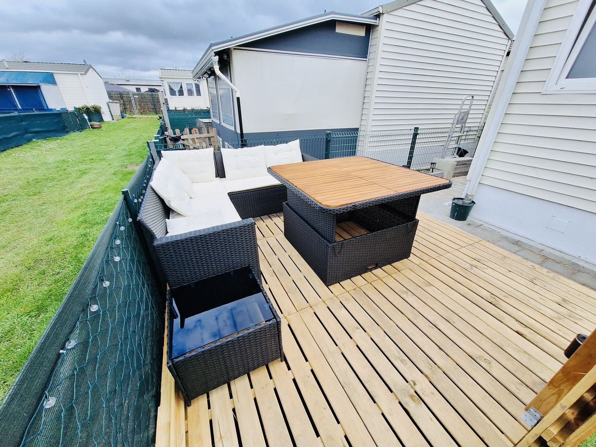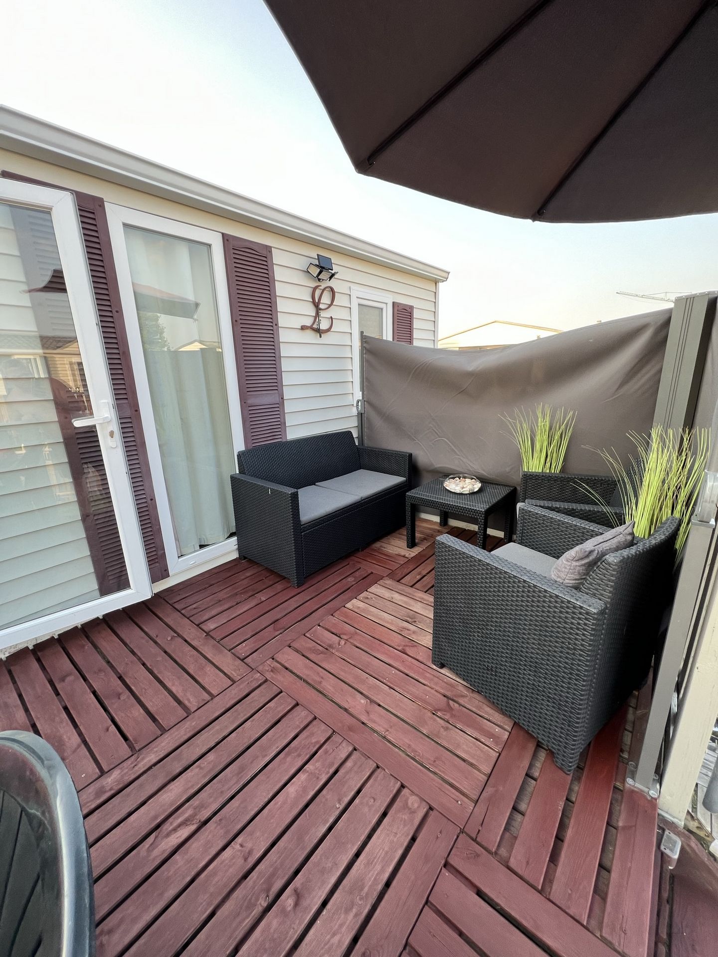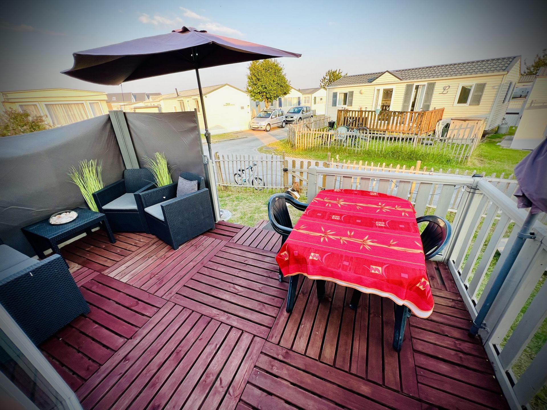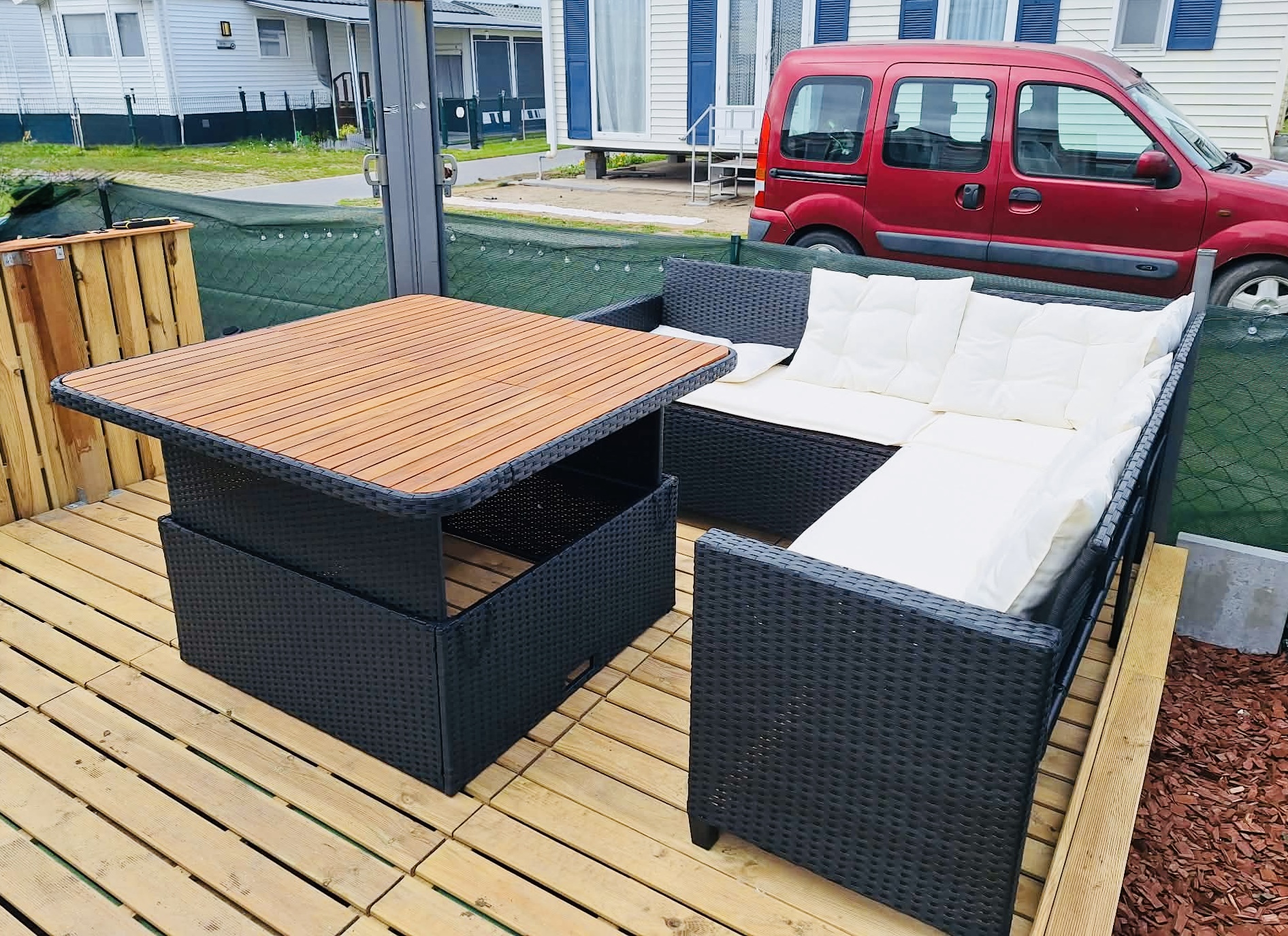 En plus du jardin clôturé, la Desmavane possède une terrasse équipée d'un salon de jardin, d'un pare-vent rétractable et de parasols où les apéros deviennent interminables