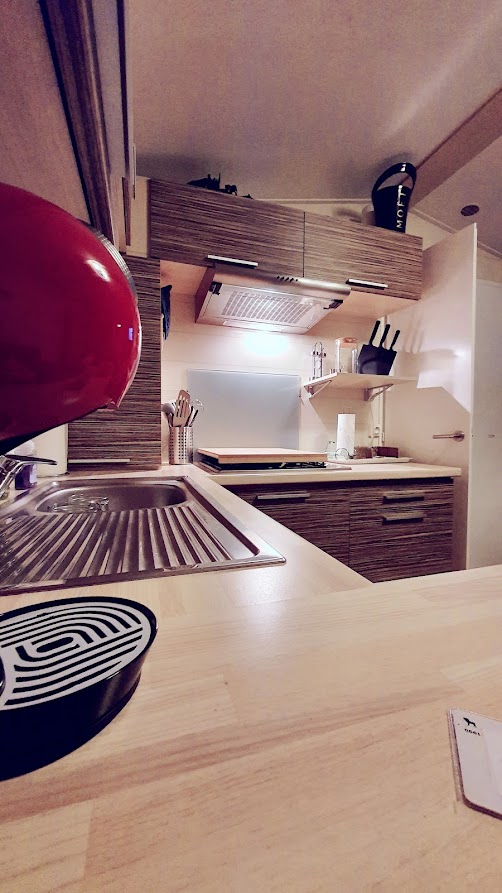 En plus de la Dolce Gusto, la cuisine est équipée d'un grille-pain, d'un Micro-Ondes combiné Four et Grill, d'un chauffe-plat et d'une friteuse AirFryer !