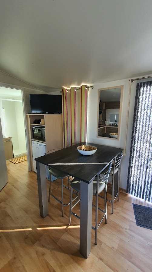 Il s'agit d'une caravane, type résidentielle munie de tout le confort nécessaire pour que votre séjour soit des plus agréable, pouvant accueillir jusqu'à 4/5 personnes MAX.