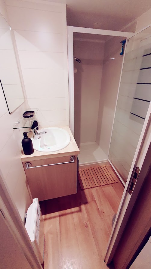 Une bonne douche après une journée de plage ou de promenade? Pas de soucis, La Desmavane est équipée ! Douche, évier, miroir,